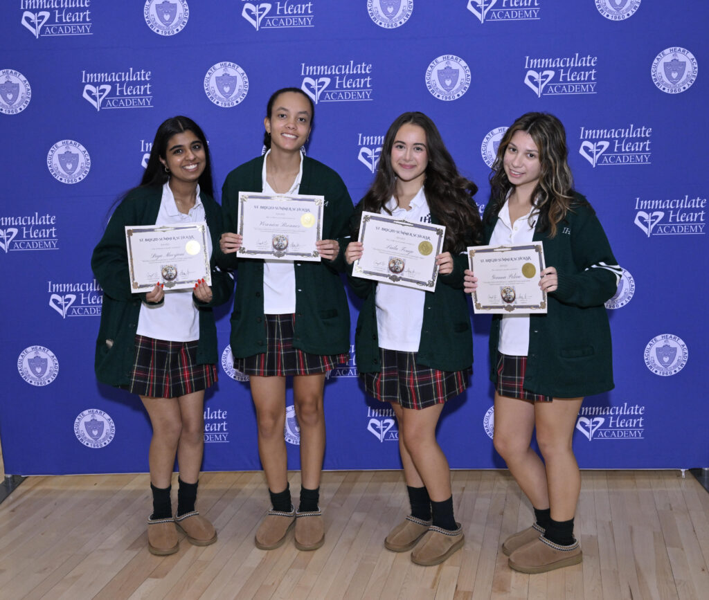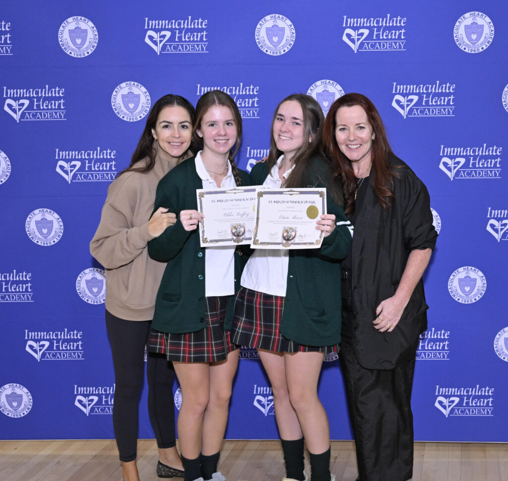 IHA recognized 28 impressive students with St. Brigid Summer Scholar Awards on October 3, 2025. The St. Brigid program is designed for rising seniors to receive recognition for their scholarly and service-oriented pursuits beyond the traditional classroom setting. To qualify for an award, each scholar is required to dedicate a minimum of 30 hours to a chosen pursuit over the summer and maintain a daily journal reflecting on their experiences. At the conclusion of their summer endeavor, students created video presentations documenting their activities.