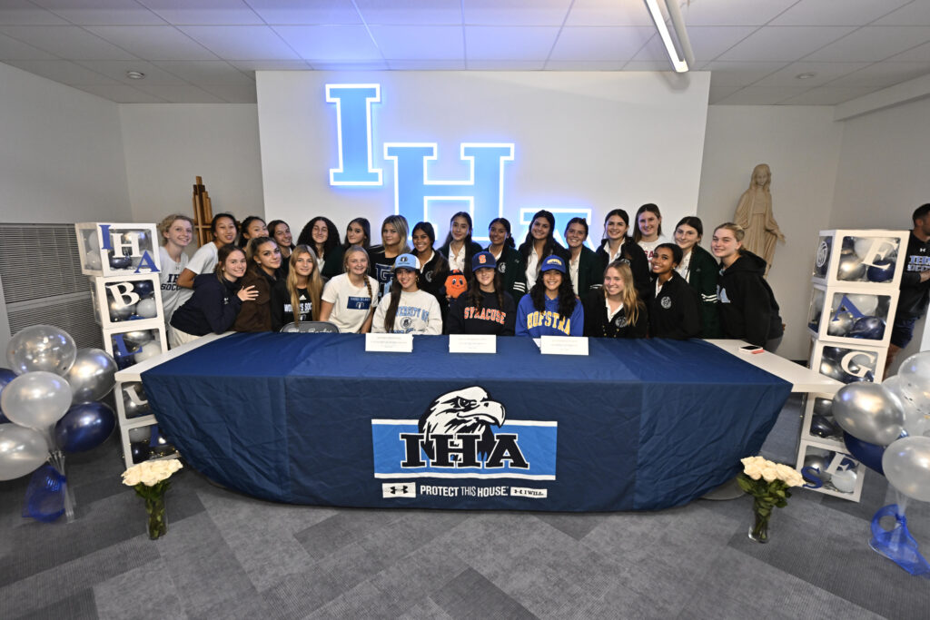 Congratulations to nine IHA student-athletes who officially signed to their colleges and universities on the afternoon of November 12, 2025. Over their four years at IHA, these signees have accumulated more than 1,500 service hours combined and are members of the National Honor Society, Science National Honor Society, Mu Alpha Theta National Mathematics Honor Society, Spanish Honor Society, National Art Honor Society, and Tri-M Music Honor Society. In addition to their impressive grades and academic achievements, these student-athletes also have a combined total of 21 league championships, 11 county championships, and 9 state titles.