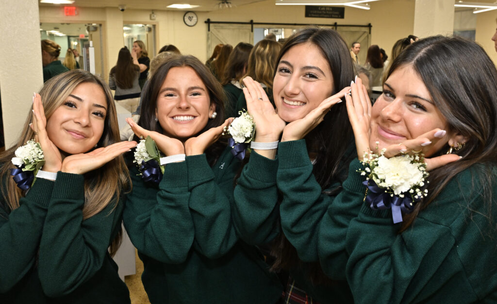 This special day began with a liturgy, presided by Fr. Vincent D’Agostino, and then a ring ceremony where Miss Kerry Carroll ʼ04, IHA principal, reflected on the incredible enthusiasm and spirit of the Class of 2027. She then described all of their incredible accomplishments in the classroom, on the athletic field, performing on stage, and serving in the community, but said what stands out the most to her, is their support of one other, “Those achievements, as laudable and as important as they are, are not what makes the class of 2027 so special to IHA. More importantly, you have rallied around classmates in need and prayed for one another through life’s greatest losses. You have stepped up to lead, greeted opportunities with joy, and helped make IHA a welcoming place for two new classes of young women.”
