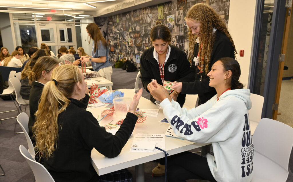 Students learned about each of these organizations before engaging in service projects with the non-profits, which included writing notes to hospice patients, wrapping gifts, assembling goodie bags, and creating bracelets with encouraging messages. The evening was an inspiring reminder of how our students consistently embrace the message of the Gospel to use their talents and treasures to help those in need.