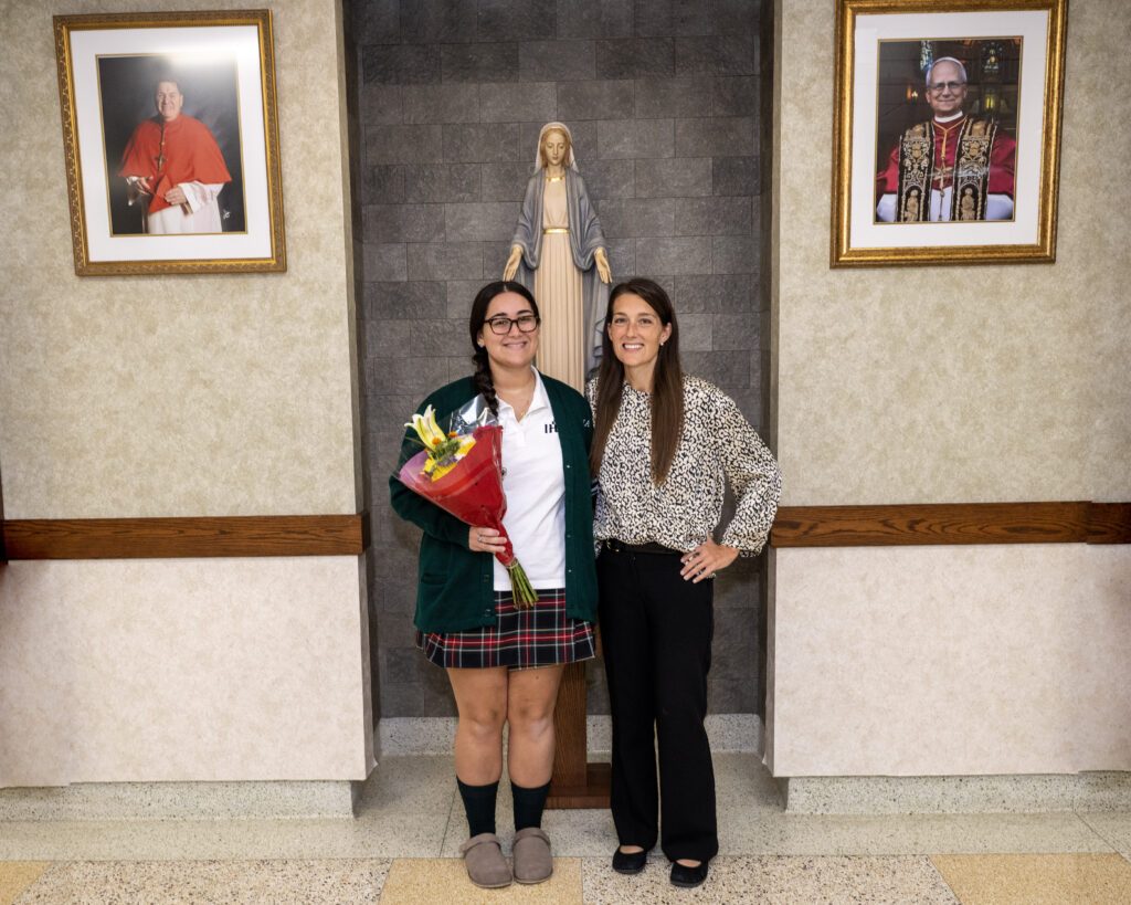 Isabella received flowers from Miss Kerry Carroll ’04, principal of Immaculate Heart Academy, on September 10, 2025, when this honor was announced. Congratulations to Isabella on this prestigious achievement!