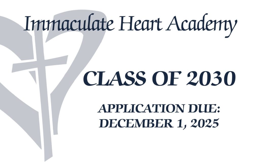 It is time to secure your place in the Class of 2030! Remember to submit your application to Immaculate Heart Academy by December 1, 2025.
